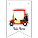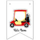 A red gold cart seen sideways, complete with bag and clubs, without people, white outline all around "sticker style"