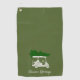 Holiday golf towel featuring a golf cart loaded up with a freshly cut Christmas tree. Wish your friends and family "Season's Greetings" with this simple yet elegant Christmas sports towel. Simple golf cart silhouette with a large Christmas tree tied to the top. Design available in a curated set of modern holiday colours. Contact us for assistance in personalising or customising, we're happy to help. Happy holidays!
