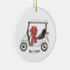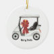 Golf Cart with red ribbon watercolor Ceramic Ornament