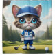 Big blue eyed cartoon golfing cat