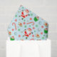 Creative golf themed Christmas holiday gift tissue or party decoration featuring Santa golfer holding a golf club surrounded by Christmas treats and snowflakes.