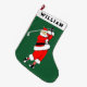 Golf Christmas stocking holiday gift and golf-themed decor for your favourite golfer featuring Santa golfing. To personalise edit text to add golfer's name.