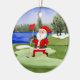 Golf Christmas Santa Claus holds flag on green Ceramic Ornament