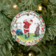 Celebrate the holidays with a festive golf twist! This charming ceramic ornament features Santa Claus golfing on a green course, swinging his club, riding a golf cart, and surrounded by golf balls, golf bags, and cheerful Christmas decorations like ornaments, candy canes, and holly. The playful text “May the Course Be With You” adds humour and holiday cheer. Perfect for decorating the Christmas tree or gifting to golf lovers. Bright, modern watercolor style with vibrant holiday colours.