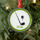 Golf club and ball black, green custom metal ornament that showcases a minimalist icon of a black golf club and ball and your text on white background with green border. Personalise it and change text with monogram, name or your message. This modern, minimalist design makes a perfect gift for golf players - golfers - or just golf lovers in your life. See lots of designs at our Sports Gifts store.