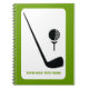 Golf club and ball black, green customnotebook that showcases a minimalist icon of a black golf club and ball and your text on white background with green border.