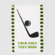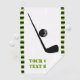 Golf club and ball black, green custom golf towel design that features a minimalist icon of a black golf club and ball, your text and a border with green, black and white stripes.