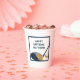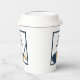 Create personalized party supplies for birthday parties and more to celebrate your favorite golfers. These paper cups feature my realistic style illustration of a golf club and golf ball in shades of blue and gold and your custom message in coordinating navy blue. The message and graphic appear inside of a navy blue frame on the front and back of this cup.