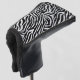 This golf club cover is shown in black with an animal zebra print accent and black piping.