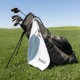 Fun and playful personalised white golf towel featuring a hand drawn illustration of golf clubs sticking out of a golf bag. The perfect gift for the golf enthusiast in your life!