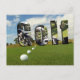 Pictured is a golf course with golf balls and a golf logo over the top that was made with a golf clubs image