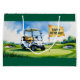 This medium-sized gift bag features a stunning watercolor illustration of a peaceful golf course, complete with a "Happy Retirement" message displayed on the green. The bag’s elegant design captures the essence of a golfer's well-earned retirement, making it perfect for gifting golf-related items or memorabilia. The scenic design will bring a personal touch to any retirement celebration, offering a stylish and thoughtful way to present your gift to the retiring golfer.