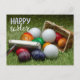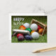 Happy Easter to golfer Holiday Postcard with golf cart and golf tee on green grass background