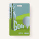 This golf event participation badge is suitable for small self-organised golf tournaments, or for participants to use for memory collections and track record analysis. It features a modern design of golfer and golfball on the front, with the word 'golf" in large text on a green blue background. On the back, there is space for a photo.