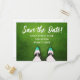 Send out this economical save-the-date postcard invitation for your next golf event. Customise the text with the font and style of your choice. Fun photo of golf shoes on the putting green is sure to catch your guest's attention. The back panel is free for all your event details.