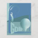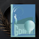 This amazing golf postcard features a fantastic image of a golfer and a big golfball with the text golf in front of a stunning teal-blue hill background – perfect for all golf lovers.