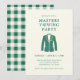 A stylish Masters viewing party design inspired by the iconic green jacket tradition and the relaxed elegance of a spring golf weekend. This invitation features refined typography, a simple illustrated green jacket motif, and a soft green palette set against a warm neutral background for a look that feels polished yet modern. The front layout keeps the focus on the event details with clean spacing and balanced design, while the back showcases a classic green check pattern that adds texture and personality without overpowering the minimalist aesthetic. Ideal for hosting a Masters watch party, golf club gathering, or spring sports celebration with friends and fellow golf fans. Personalise the invitation with your event date, time, location, and RSVP details to create a thoughtful announcement that reflects the timeless style and tradition of golf season.