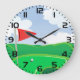 Golf Green with Red Flag and Ball Large Clock