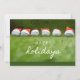 Happy Holiday card to golfer with golf Santa hat for Christmas Holiday on green grass