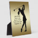 The image shows a female golfer in full swing. The Hole-in-one Commemoration information is a template that is easily customised. This is a gift sure to please any golfer lucky enough to get a hole-in-one.
