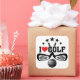 Sick this fun I LOVE GOLF sticker to your golf bag or anywhere you like and display it to show you love Golf! Available on other great Zazzle products this golf design has two crossed golf clubs and a ball with the slogan: I love Golf. There are more golf themed products available in the Stand Up and Cheer store. Check it out today!