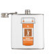 The flask itself is fine. It’s a cheap flask, obviously bought in bulk, however am prepared to overlook that. Given that it is a personalized item, I would have liked to have seen gift boxing instead of the generic packaging. Terrible printing, and/or quality. It’s a cheap, tacky vinyl. It is not cut straight and is also applied in a way that it is overhanging the bottom, causing the glue to catch on items and it will eventually roll and tear, damaging the wrap.