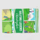 Four funny golf cartoons showing various stages of a round of golf. Tee off, lucky long shot, sand trap incident, and missed putt. Personalise the product with your own name choice.