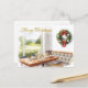 Send warm holiday wishes from the fairway with this elegant watercolor postcard featuring a festive golf-themed from clubhouse overlooking the course.