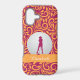 Celebrate your love of golf with this vibrant Case‑Mate iPhone 17 cover. A dynamic female golfer silhouette stands atop a realistic golf ball, accented by a bold orange ribbon that doubles as a template for your custom name or initials in elegant white script. The trendy pink background features a contemporary swirl‑and‑leaf pattern in coordinating orange for a playful yet stylish finish. All colours can be customised, making this design uniquely yours and perfect for gifting.