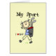 Golf My Sport T-shirts, hoodies, mugs, magnets, cards, stickers, tote bags, keychains, water bottles, pillows, binders, journals, and other golf apparel and gifts featuring a stick figure female golfer with clubs.