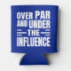 Can cooler is shown in a royal blue colour funny golf over par print.