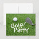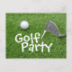 Golf Party with golf ball and tee on green grass Invitation Postcard