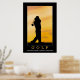 Golf poster featuring the silhouette of a golfer driving into the sunset and featuring the words "Golf Deceptively simple, endlessly complicated"