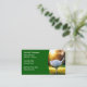 Business cards for a golf business designed with a cool graphic of a golf ball on a golf T closeup with beautiful morning light on the golf course and simple editable template you can customise online.