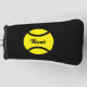 Golf putter head cover with tennis ball logo. Custom golf gifts for tennis lover, mum, dad, sports coach etc. Personalise with name or monogram initials. Colours can be changed. Protective sleeve for golf clubs. Upload your own logo optionally.