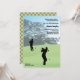 For the dedicated golfer, a birthday celebration invitation he will love! The invitation features a golf course with a green foreground and trees in the distance and two golfer silhouettes. The back has coordinating colours in a plaid pattern. The card is easy to customise with your wording, font, font colour and choice of six paper types.