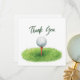Show your appreciation in style with this elegant watercolor Golf Thank You card. Featuring a single golf ball resting on a tee atop a lush green putting surface, with clean handwritten text “Thank You”, this design is perfect for golfers, golf enthusiasts, or anyone who loves the game. Ideal for thank-you notes, gifts, or event stationery.