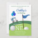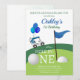 Celebrate your little ones milestone with this charming golf themed first birthday invitation. Featuring a playful golf cart, balloons, and course details, this design uses fun golf terminology to set the tone for a day of joy. Perfect for golf-loving families, it combines sporty style with festive flair to make your childs party unforgettable. Customise with your event details and impress guests with a unique, hole-in-one celebration.