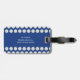 Golf balls create a bright polka dot pattern on a navy background, with a separate pattern of golf clubs on red. There is a white stripe for you to personalise with a name or other text. On the back add your preferred contact details, in white on a navy background with more golf balls to match the front.