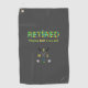 Fun RETIRED, PLAYING GOLF IS MY JOB quote on this custom golf towel for golf lovers. Perfect gift for Birthdays, Father's Day, Christmas or any other occasion. Clicked on the Personalise button to enter your own initials. Design by Inge Lewis. Shop for more unique golf gifts at the ingeinc.com online store / boutique.