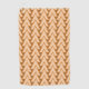 Triangles in tan, outlined in orange, intersect in vertical rows. Background in darker brown. Could be a forest of trees, or faux knit stitches.