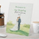 Welcome your guests in timeless golf-inspired style with this elegant pedestal sign featuring a bride and groom standing together on the putting green. Designed for couples who share a love of the game, this romantic display blends country club charm with classic wedding sophistication.