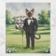 This charming wine label is the perfect way to honour the groom on his special golf-themed wedding day. Featuring a playful watercolor design of a groom cat on the golf course, complete with golf clubs, a golf ball, and a beautiful course backdrop, this label brings together the love of golf and the fun spirit of cat lovers. Tailored for the groom, it adds a whimsical yet meaningful touch to his celebration. Ideal for wine bottles at the wedding or as a thoughtful gift, this label is perfect for a golf-loving groom and makes a unique keepsake from the big day.