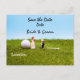 Golf wedding with bride and groom save the date Postcard