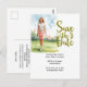 Golf woman golfer is golfing on green postcard
