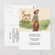 Golf woman golfer is golfing on green postcard