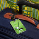 I was happy with the acrylic tag but it came with a thin leather strap to attach the tag to luggage (like a cat collar). I replaced the strap with a metal ring off of a key ring as the leather strap would come undone or break easily as luggage is sometimes handled without much care by airlines. Printing is great. Colours and positioning of the design I put on the tag were perfect. Very pleased.