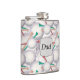 The flask itself is fine. It’s a cheap flask, obviously bought in bulk, however am prepared to overlook that. Given that it is a personalized item, I would have liked to have seen gift boxing instead of the generic packaging. Terrible printing, and/or quality. It’s a cheap, tacky vinyl. It is not cut straight and is also applied in a way that it is overhanging the bottom, causing the glue to catch on items and it will eventually roll and tear, damaging the wrap.