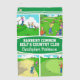 Golf Club Towel. Four funny golf cartoons showing various stages of a round of golf. Tee off, lucky long shot, sand trap incident, and missed putt. Personalise the product with your own golfer name choice as well as the name of the golf club.