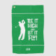 Cute golfer quote "Tee It High & Let it Fly!" design features a fun mid-century font in white on a solid kelley green background combined with a masculine golfer silhouette also in white. Customise with monogrammed initials, name or short text with the simple-to-use template. The colour of the quote, golfer and towel is customisable. The font colour or style of the initials may also be customised. The typography and golfer are vector graphic designs and can be easily transferred to other Zazzle products large, or small, and will retain clarity without pixelating. Message with custom colour requests of questions.